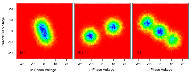 In a third experiment, we demonstrated a giant cross-Kerr effect orders of magnitude larger than in previous work [L20]. The cross-Kerr effect is an effective interaction between two photons mediated by the artificial atom. It has been widely studied theoretically because of a number of potential applications such as photonic quantum gates and quantum nondemolition (QND) measurements of photons. Working with theory collaborators, we have extensively studied the application of our artificial atom to QND measurements, showing they are feasible with existing technology [L18, L21].